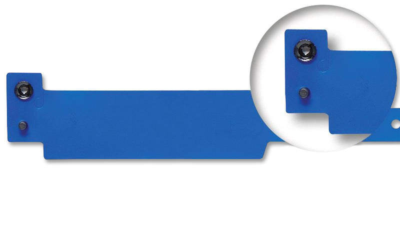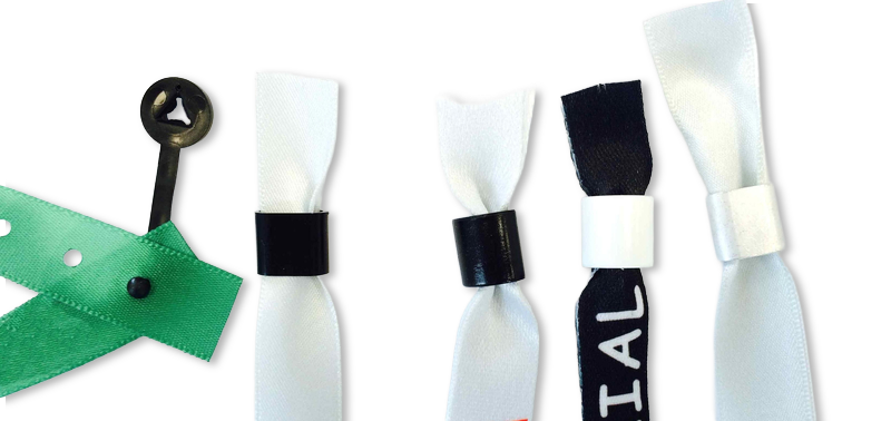 Slidelock: Schiebeverschluss mit Wiederhaken der nur in eine Richtung geschoben werden kann. Aus Plastik oder Metall. Ermöglicht eine zügige Einlasskontrolle. in rund (für smooth Material und gewebt) und flach (für Satin) verfügbar.