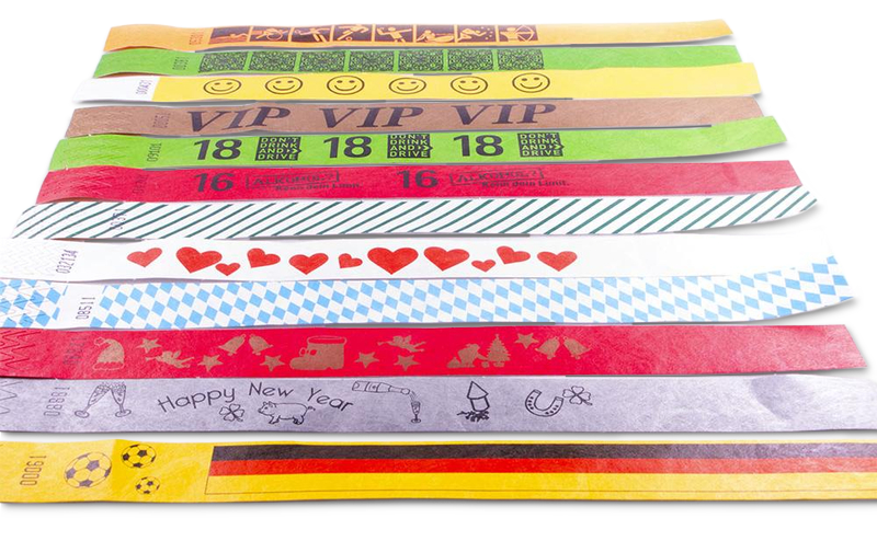 In unserem Sortiment bieten wir viele unterschiedliche Eintrittskontrollbänder - Varianten an. In diversen Materialien, Größen, abwechslungsreichen Farben und verschiedenen Ausführungen. Schnell, sicher und einfach in der Handhabung, nicht übertragbar, absolut hautverträglich und wie bei all unseren Produkten immer individuell bedruckbar. Für mehrtägige Festivals, Messen, Events oder zu besonderen Anlässen. Mit persönlichem Logo oder origineller Werbebotschaft – der Fantasie sind nahezu keine Grenzen gesetzt.